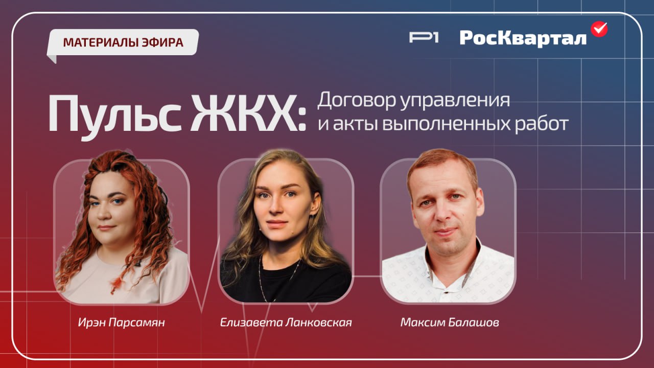 «Пульс ЖКХ» – наш совместный проект РосКварталом. В сентябрьском выпуске мы обсудили жалобы жителей МКД, а в октябре – ведение реестров собственников. Темой третьего эфира стали акты выполненных работ и договор управления.